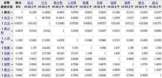 主要货币汇率