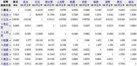 主要货币汇率