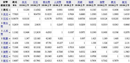 主要货币汇率
