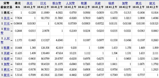 主要货币汇率
