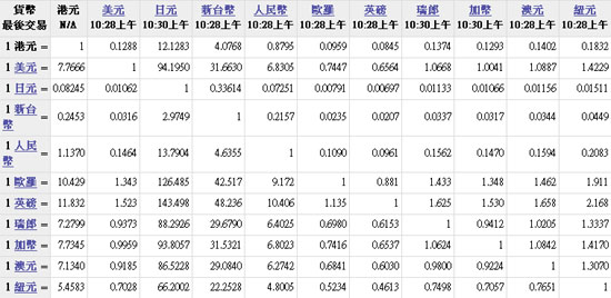 主要货币汇率2010.03.31