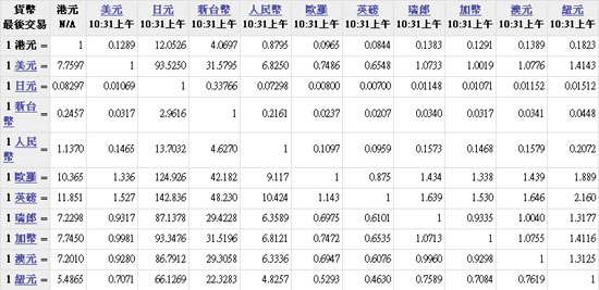 主要货币汇率