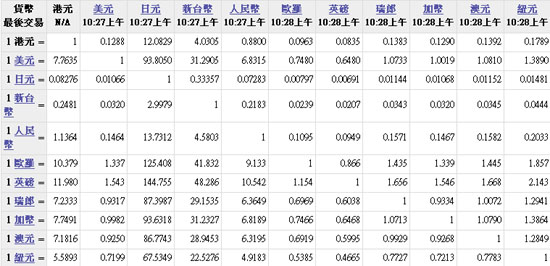 主要货币汇率