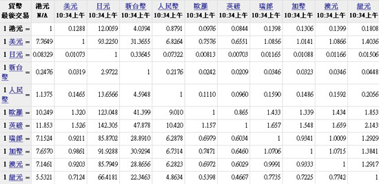 主要货币汇率