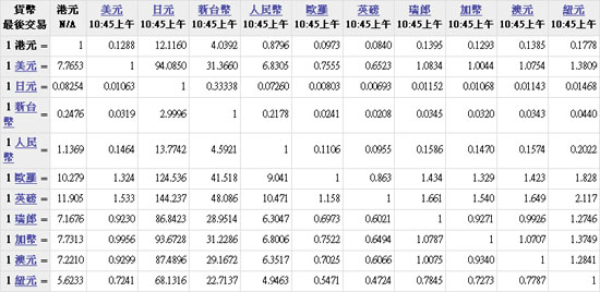 主要货币汇率