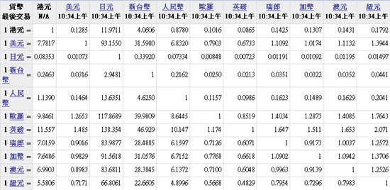主要货币汇率