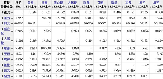 主要货币汇率