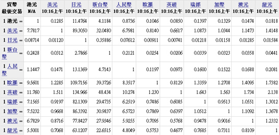 主要货币汇率