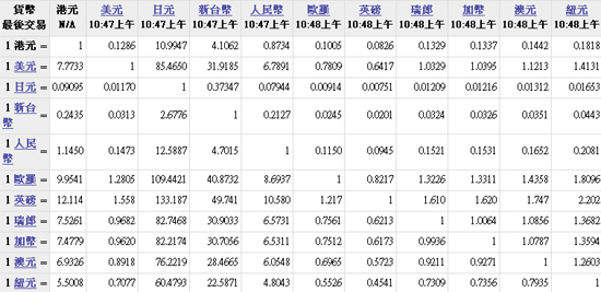 主要货币汇率2010.08.16