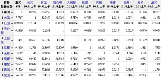 主要货币汇率