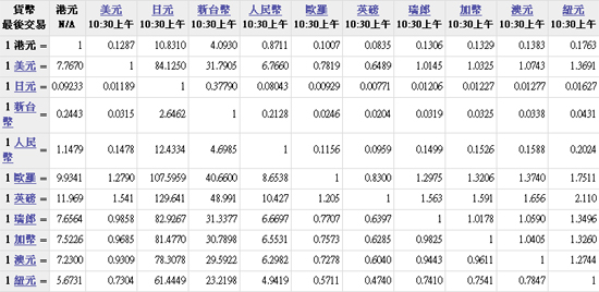 主要货币汇率