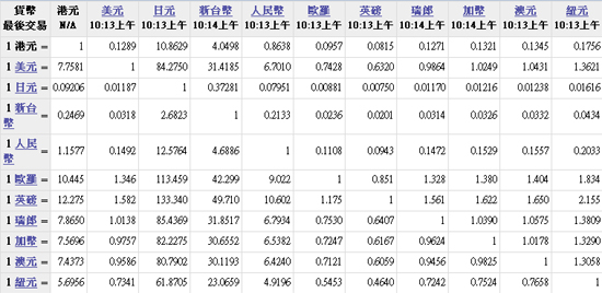 主要货币汇率