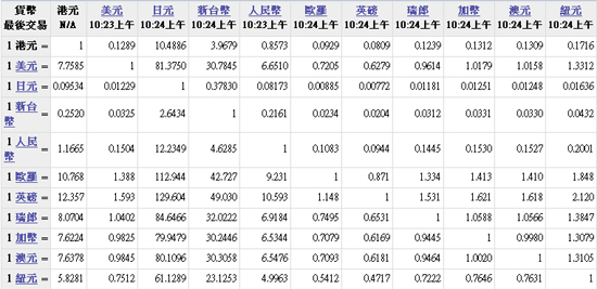 主要货币汇率
