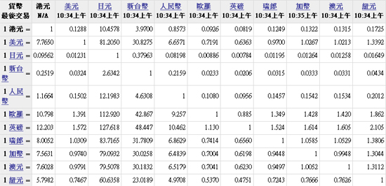 主要货币汇率