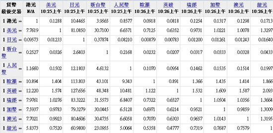 主要货币汇率2010.10.25