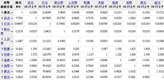 主要货币汇率