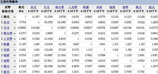 主要货币汇率