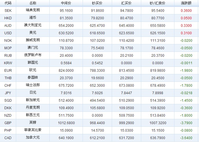 主要货币汇率