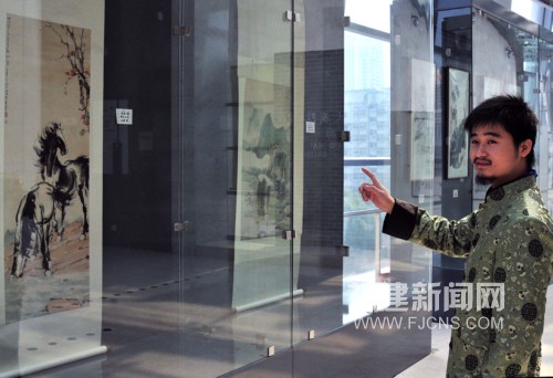 12月2日,当地民众及艺术家正在福建大剧院欣赏两岸书画名家大作。当日,由福建省文化厅主办,台北福建省同乡会、台北八闽书画协会、台中中国书协研究发展协会等共同举办的第四届福建艺术节海峡两岸书画名家作品展在福州展出。旨在拓展两岸书画艺术内涵、进一步加强闽台艺术交流与合作。(张丽君 摄)