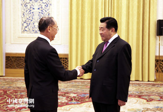 12月9日下午,中共中央政治局常委、全国政协主席贾庆林在北京会见以钱复为团长的台湾金融代表团一行。(中国台湾网 钟宝华 摄)