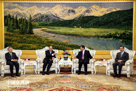12月9日下午,中共中央政治局常委、全国政协主席贾庆林在北京会见以钱复为团长的台湾金融代表团一行。中共中央台办、国务院台办主任王毅陪同会见。(中国台湾网 钟宝华 摄)