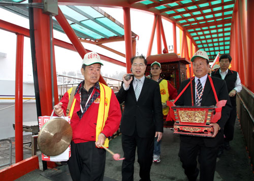 据报道,金门烈屿保生大帝庙管理委员会组成的280人进香团,是由烈屿乡长兼庙管会主委洪成发率领,护送保生大帝金身、香炉,11日上午从小金门搭船到水头港区,再换船到厦门,展开3天宗教交流。