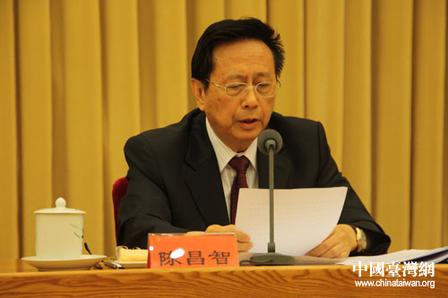 中国和平统一促进会副会长陈昌智主持本次大会(中国台湾网 王君飞 摄)