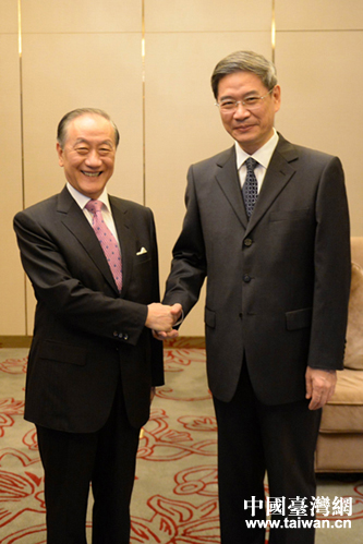 中共中央台办、国务院台办主任张志军近日在中山市会见了前来出席第二届海峡两岸中山论坛的新党主席郁慕明。(中国台湾网发)