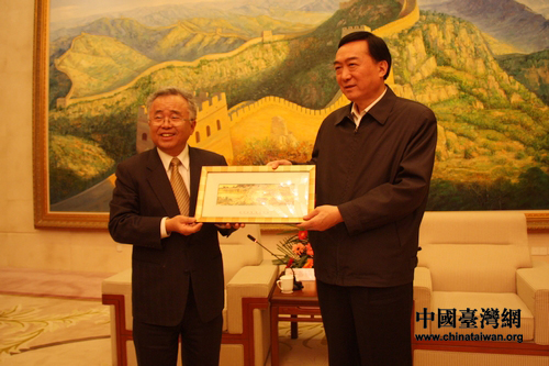 11月29日,河北省省长陈全国(右)会见台湾金融服务业联合会总会理事长许嘉栋为首的“台湾金融团”。(中国台湾网记者 马迪 摄)