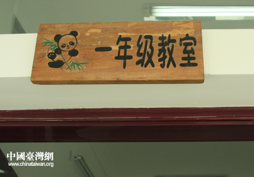 学校教室门牌上的熊猫图案,体现雅安与台湾的熊猫情节。(中国台湾网 高斯斯 摄)