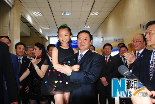 5月23日,中共四川省委书记刘奇葆率团抵达台北,展开为期6天的“天府四川宝岛行”活动。图为刘奇葆抱起为他献花的台湾小朋友。新华社记者 徐然摄