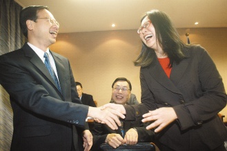 江丙坤说,和平与繁荣是连体婴,切不开的,在台湾,没有和平就没有繁荣。这个目的民进党应可以赞同,他认为,国、民两党应是“殊途同归”,最后的目的就是让台湾老百姓安居乐业。两岸和平繁荣,就意味百姓安居乐业。