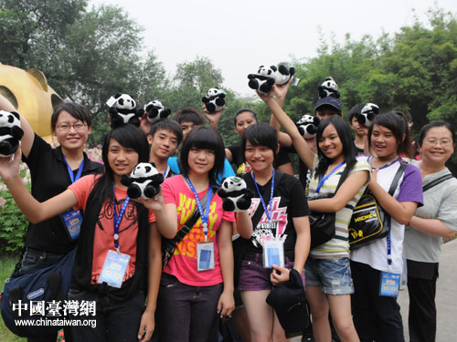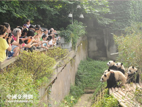 中国台湾网7月30日成都消息 7月29日上午,成都大熊猫繁育基地迎来了一批特殊的游客,他们是受中共四川省委书记刘奇葆邀请到四川参加夏令营的台湾学生交流团,他们在这里与可爱的大熊猫进行了一番亲密接触。