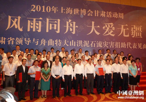 中国台湾网9月15日舟曲消息 日前,在上海世博会甘肃活动周开幕式上,16家台资企业和全国台企联发扬大爱无疆、爱心无限的精神,慷慨解囊,为甘肃舟曲捐款1780万元、捐物150万元。甘肃省省委书记陆浩、代省长刘伟平等领导会见了捐款企业代表并颁发捐款证书。