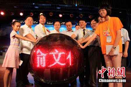 台渝两地师生等代表一同启动“两岸同心——巴渝文化参访周”水晶球。 连肖 摄