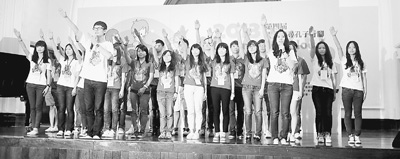7月中旬,两岸大学生志愿者在台师大礼堂誓师出发。台师大提供