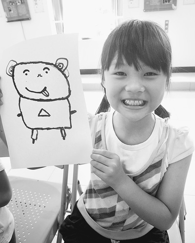 在大学生志愿者指导下,孩子“秀”出自己的作品。台师大提供