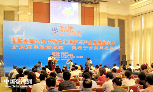 中国台湾网6月21日宁德消息 21日上午,海峡两岸文化保护与产业发展座谈会在宁德举行。来自海峡两岸的11名专家、学者,围绕闽台少数民族文化交流、福建畲族与台湾盘兰雷钟姓氏历史渊源、以及闽东畲族传统文化保护等内容发表主题演讲。两岸共有300多名嘉宾参加座谈会。