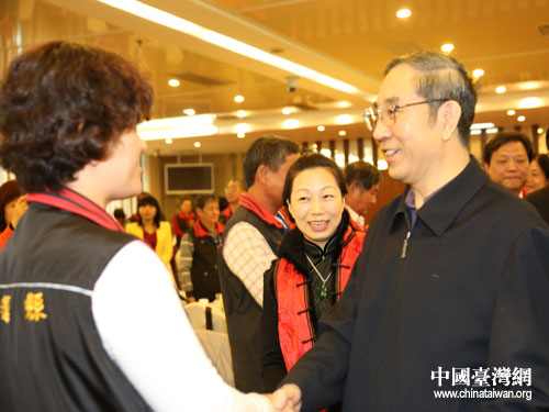 中国台湾网11月21日南宁消息 11月20日,由台湾花莲县县长傅崐萁夫人徐榛蔚率领的122名村里长和60名模范劳工结束为期7天的广西考察访问行程,乘包机返回花莲。广西壮族自治区主席马飚、副主席蓝天立与代表亲切话别,祝客人一路顺风。