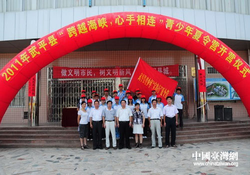 中国台湾网8月26日武平消息 日前,由福建省武平县台办、县教育局和县职专联合举办的“跨越海峡·心手相连”青少年夏令营活动在武平县职业中专举行开营仪式。武平县18名优秀职高学生在老师的带领下于24日赴宝岛台湾进行为期6天的夏令营活动。