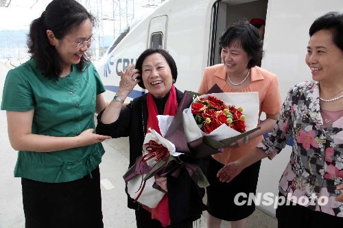 6月21日,台湾中华妇联总会主任委员辜严倬云女士在福建省妇联领导的陪同下,乘动车从厦门回到阔别73年的家乡福州,受到福州市委统战部、市台办、市妇联官员的热烈欢迎。 中新社发 杨婀娜 摄