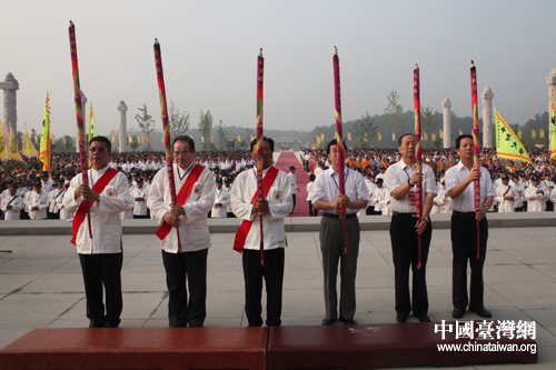 两岸主祭人国台办交流局局长李维一、台湾“中华神农大帝协进会”理事长陈福财等共敬高香(中国台湾网 赵辉 摄)