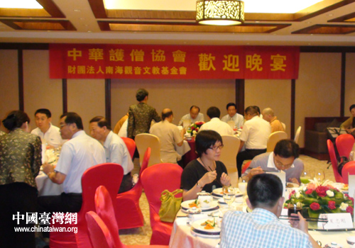 中国台湾网8月11日舟山消息 8月10日,台湾中华护僧协会荣誉理事长释传孝和南海观音文教基金会会长吴天池,赴浙江省舟山市普陀山参加了普济寺道慈大和尚升座法会。期间,与舟山市委副书记、市长周国辉进行了会面,并着重围绕“千人护千佛、慈航宝岛行”为主题的佛教文化交流事宜进行了具体的交流磋商。
