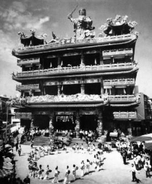 明正德九年,分居新庵社(今平和县旧楼村)的李氏和巫氏从侯山宫分灵,择建“紫极宫”供奉玄坛元帅。清康熙七年(1668年)六月,因山洪爆发,新庵社被水冲毁,一部分先民迁居别处,另一部分先民渡台谋生。至清乾隆年间,有巫氏八兄弟从“紫极宫”恭请玄坛元帅的金像香火,搭乘木帆船涉洋过海,战胜艰险,终于幸运地从台湾鹿港登陆,抵彰化县城后建坛奉祀玄坛元帅。每年的农历三月十六,当地都要由炉主主持庆祝大典,答谢神恩,从此玄坛元帅的香火在台湾蔓延开来。清雍正年间,西山李氏第十三代子孙李创和族人计议渡台往南投草屯开垦,诚心祈祷玄坛元帅显灵保佑,后一帆风顺抵台,并在草屯安居乐业。乾隆二十年春,李创父子专程回故里侯山宫奉请玄坛元帅金身及香火到南投县草屯镇建“敦和宫”,供奉为地方守护神,称为“敦和宫”是沿用西山故里之宫名。在台湾,或是“通天宫”,或是“五福宫”,宫名各不相同,但主祀的都是玄坛元帅。如今,台湾供奉玄坛元帅的宫庙香火鼎盛,信众遍及全台及日本,玄坛元帅在当地民众心中是地方的守护神、财神爷。