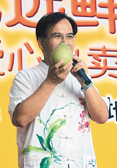 台南县长苏焕智11日中午在北京,主持一场台湾水果义卖展售会。(李志德/摄影)图片来源:人民网