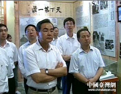 中共中央台办、国务院台办主任王毅考察台儿庄海峡两岸交流基地。图片来源:枣庄市台办