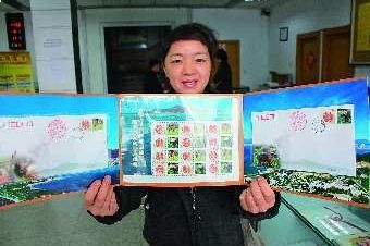 买到首日封的集邮爱好者展示“宝贝儿”。 本报记者 侯书楠 摄