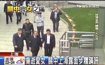 关中与夫人张惠君及相关幕僚一行共4辆车,5日下午出现在关云娣上海住处,夫人张惠君虽戴着墨镜,但仍遮不住哀伤神情;关中则由幕僚和友人搀扶步行下车,走入关云娣的住宅大厦。