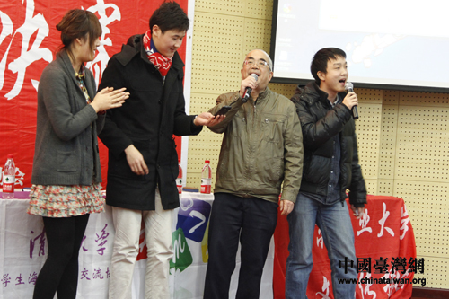 北京台联荣誉主席卢咸池和北京大学台湾研究会小组的选手共同演唱《外婆的澎湖湾》。(中国台湾网 郜利敏 摄)