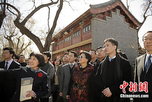 3月27日,由中国国民党青工总会会长何庆纹率领的中国国民党青年工作总会“辛亥革命百年访问团”一行来到北京宋庆龄故居参访。中新社发 刘震 摄